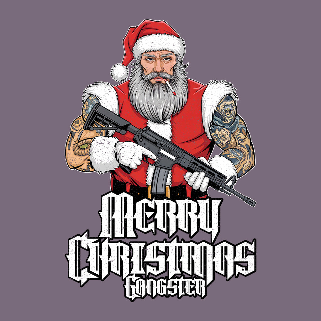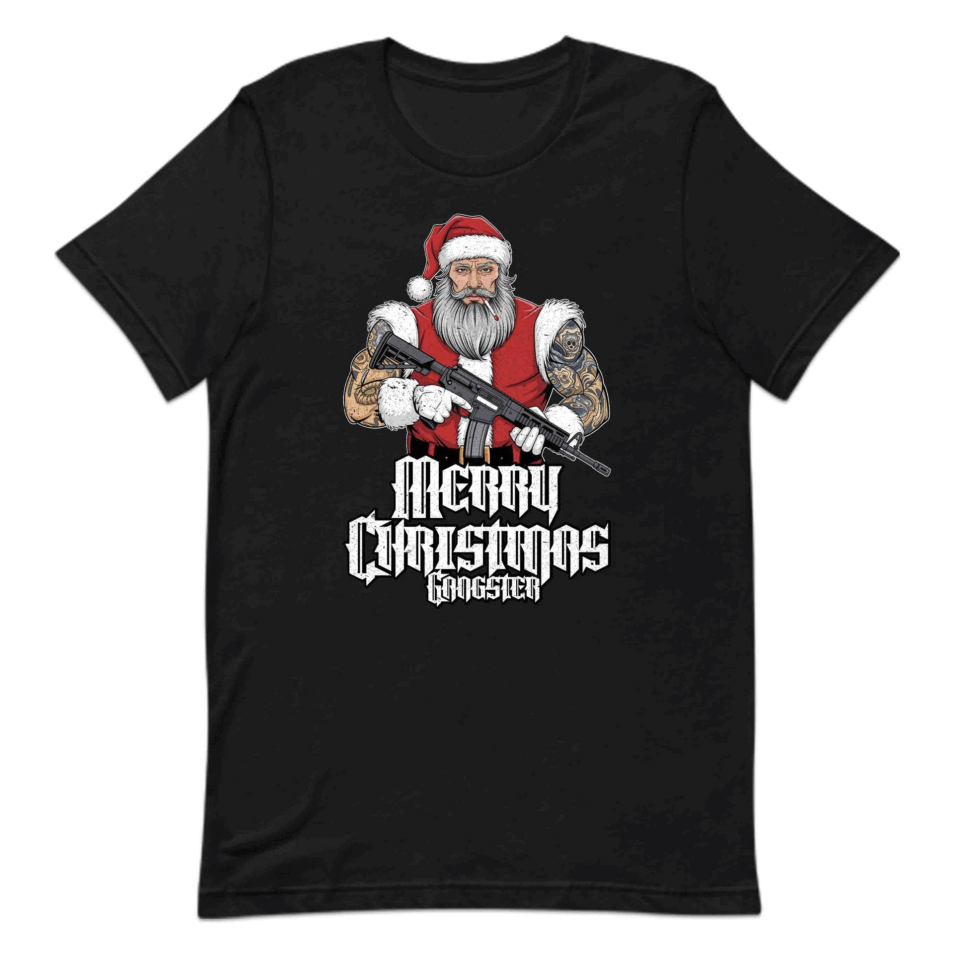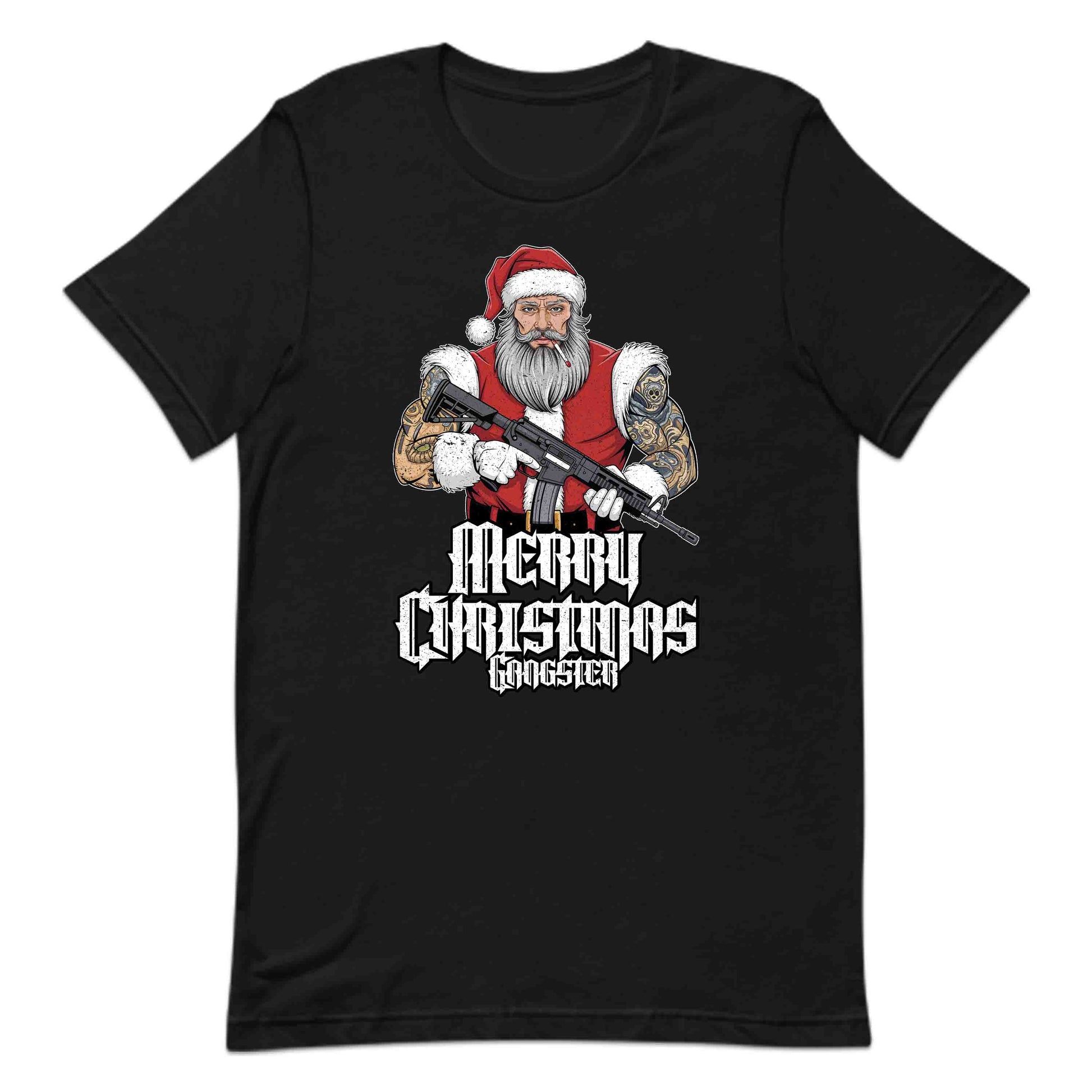 Merry Christmas Gangster Tattooed Badass Santa With AR-15 Hardcore Xmas | PRODUCT CODE: MYGRNTDHREY